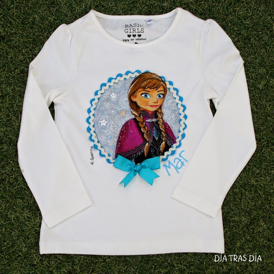 Y hace muy poquito, Mayte quiso que le hiciera a sus dos peques unas camisetas de Frozen para sus respectivos cumples. En esta ocasión cada una ha llevado a una de las protagonistas de la película y eso me ha permitido hacer una camiseta con Anna como protagonista, ya que hasta ahora todas las que había hecho habían sido con Elsa o con las dos princesas en la misma camiseta.