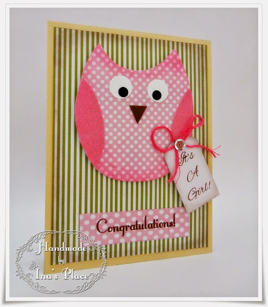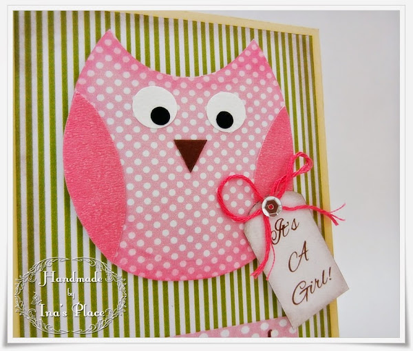 Esta hermosa tarjeta la realicé para una cliente cuya amiga espera una nena y le realizó un bello regalo y lo acompañó con este diseño de búho.
