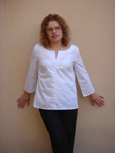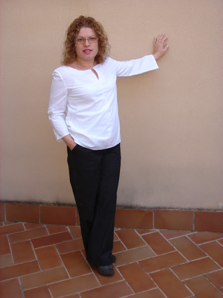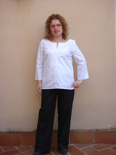 La blusa la he confeccionado en tejido de algodon de color blanco , lleva pinzas en el pecho y la manga va montada.