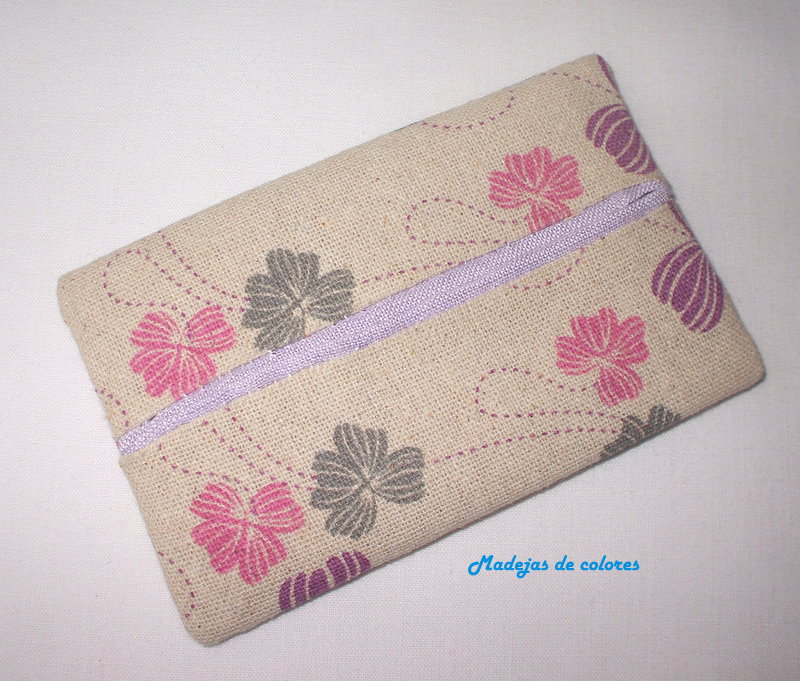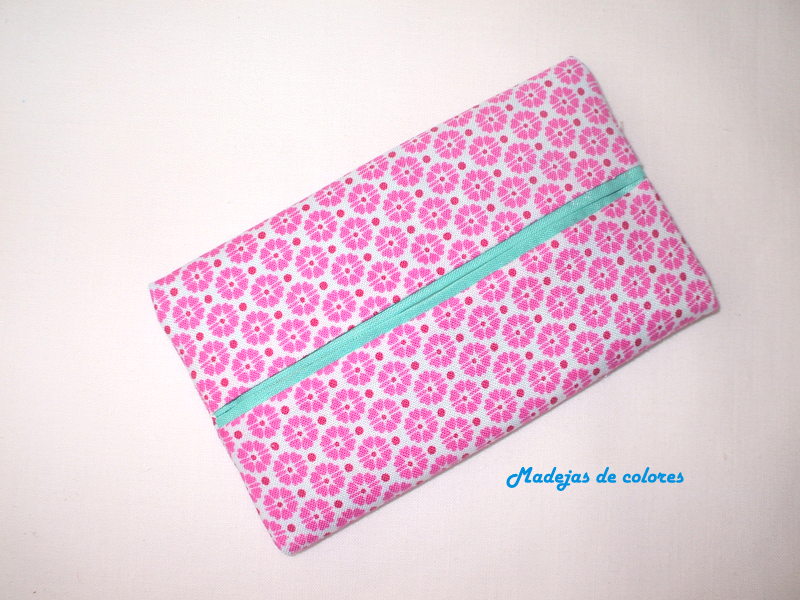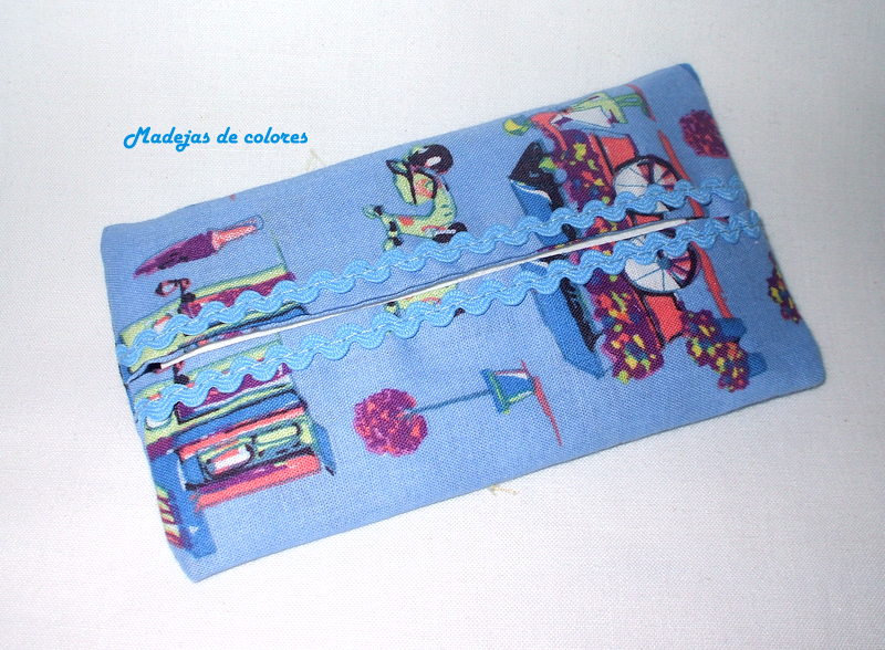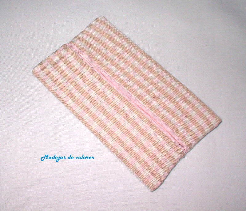 Los socorridos y prácticos guardapañuelos. Como este en cuadritos beige tostado y celeste, un forro asomando como bies celeste a juego.