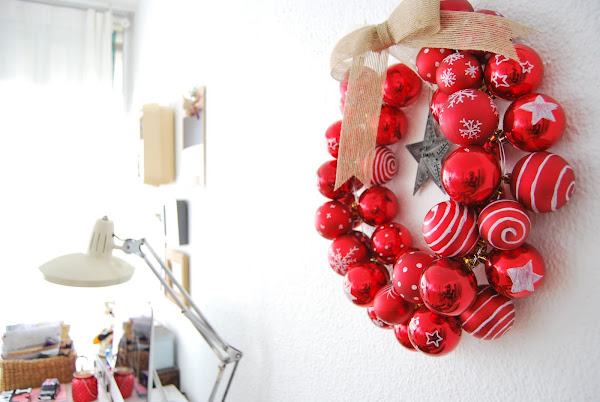 Porque aunque estas bolas llegaron a mi vida en un calurorosísimo día de verano, tenía muy claro que acabarían siendo parte de una corona de Navidad. Y así ha sido :-)