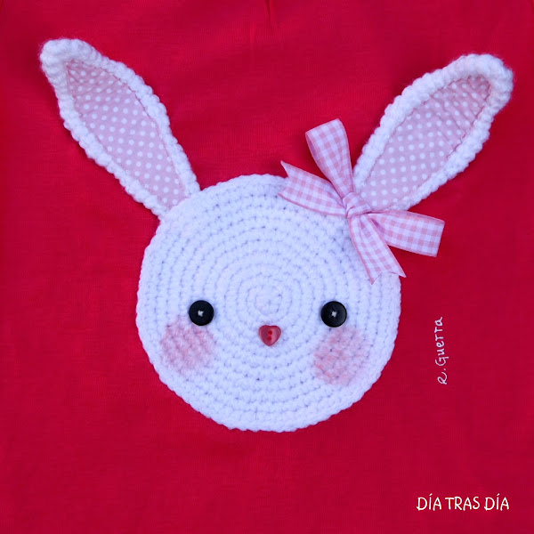 Para Nora hice esta camiseta, en un bonito color fucsia, que hace que el conejito destaque totalmente: