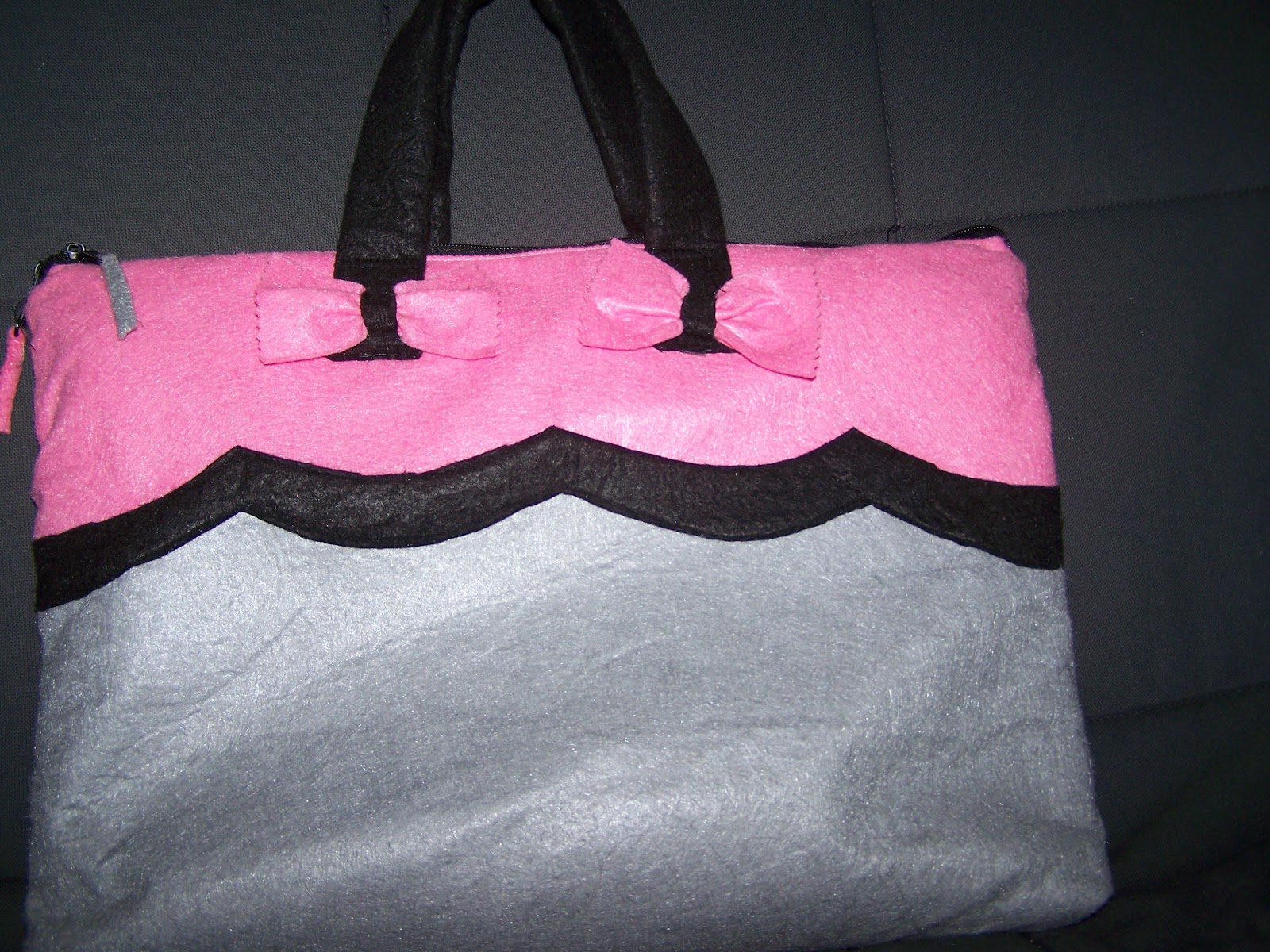 las asas son de fieltro negro y dentro le metí cinta de cinturilla para que este ma fuerte, todo cosido a maquina y las asas por supuesto con un buen zig-zag que tiene que aguantar el peso.