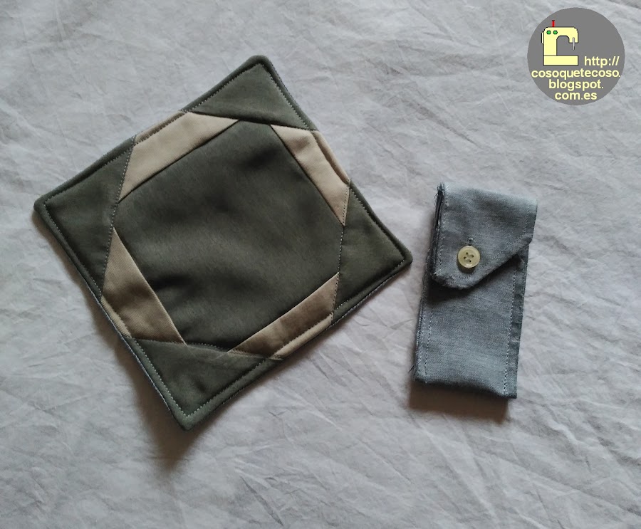 Lo gracioso es que el mini mantel está hecho con una camisa suya y con un vaquero de mi hijo.