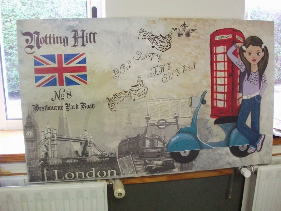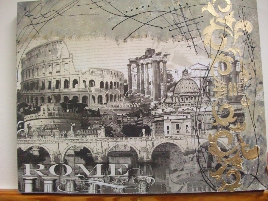 Cuadro con decoupage de Rosa, este se va a Roma como regalo.