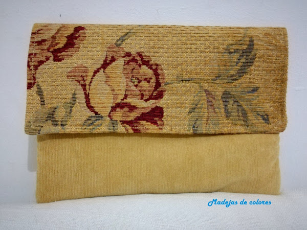 En tono ocre claro de base y tapa con unas rosa vintage.