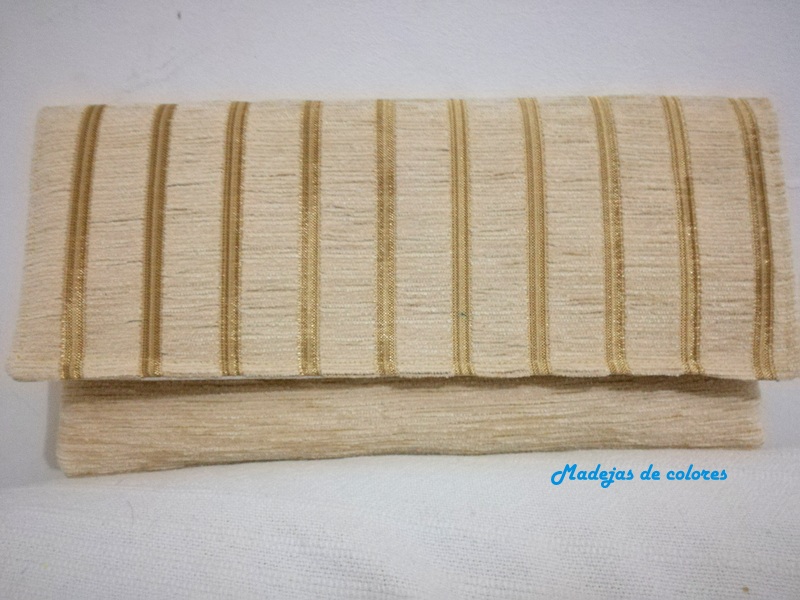 Esta en un básico de armario. en un tono natural, unas listas en dorado antiguo.