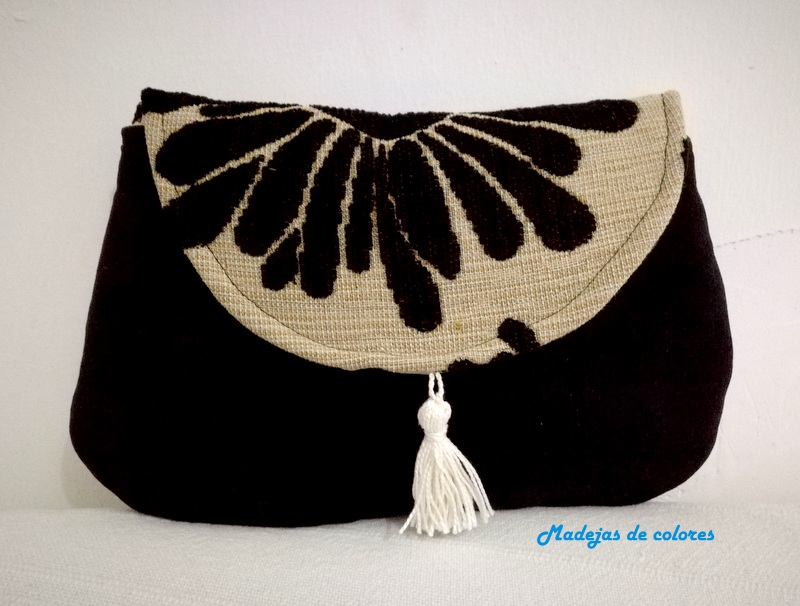 Y por último un modelo diferente que me encanta, sobre fondo beige, una gran flor negra que ocupa toda la trasera y de base negro, con borlón blanco roto.