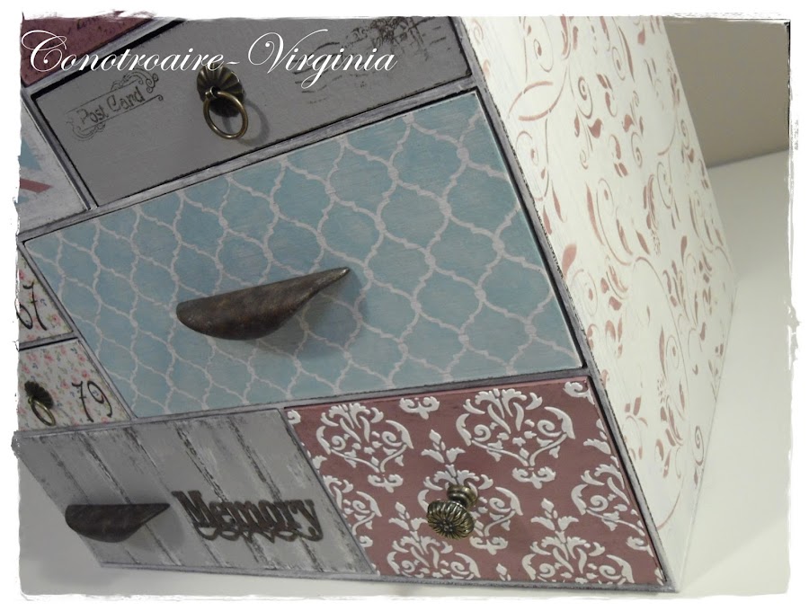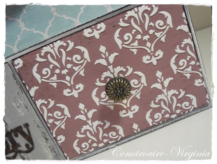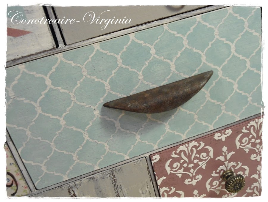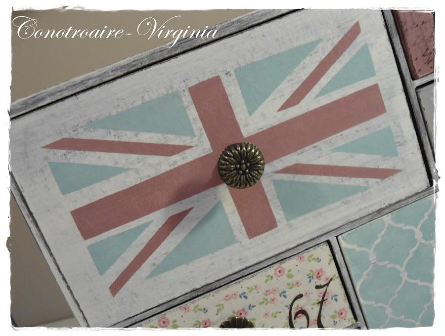 Las florecitas de estos dos cajones, son decoupage con servilleta y los números stencil.