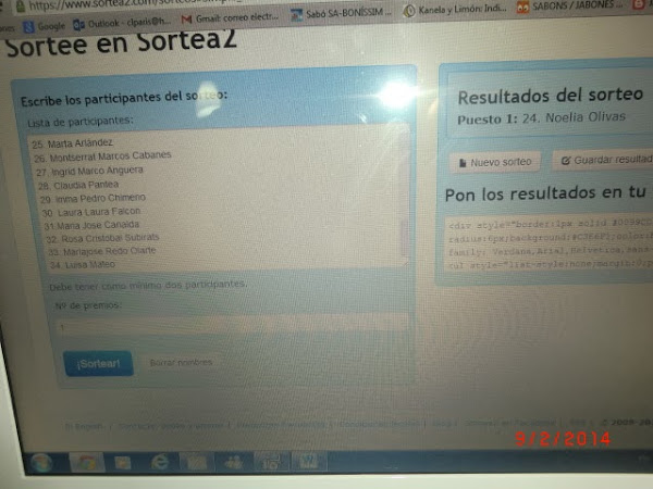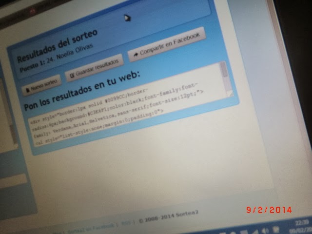 La afortunada ha sido Noelia. Ya se ha publicado su nombre y en esta ocasión sé dónde hacer la entrega. Por lo que el sorteo queda por fin clausurado del todo.