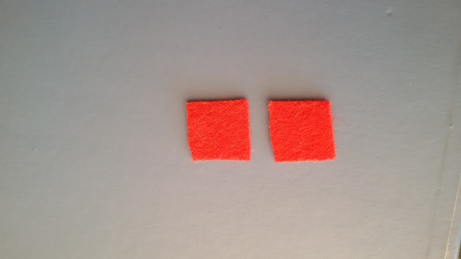 Y se me ocurrio en recortar dos cuadraditos de fieltro rojo