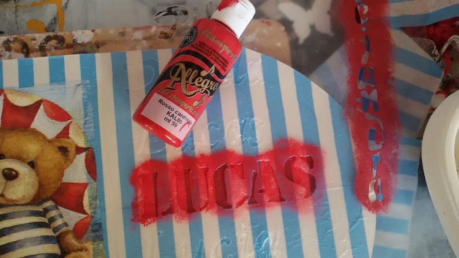 Pego toda la servilleta,mido la servilleta de ositos,la pinto