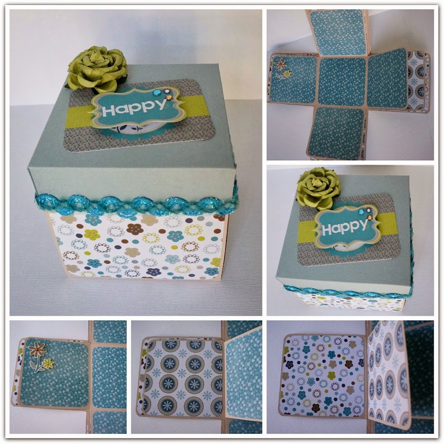 En esta ocasión la tarjeta fue sustituida por la cajita "Explosing Box", que llevaba como sorpresa un Muffin de arándanos... uhmm.