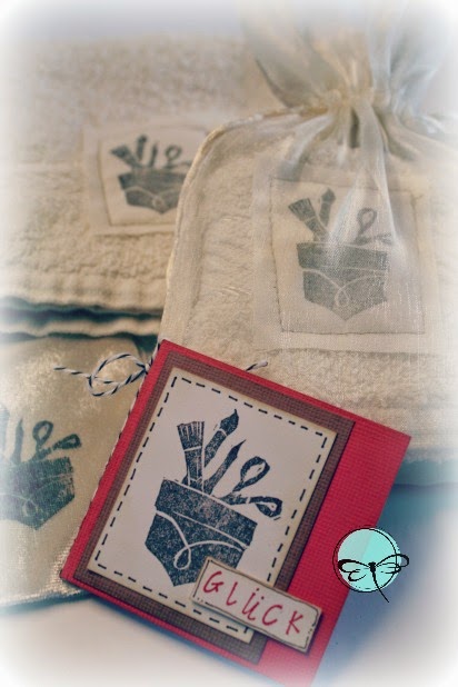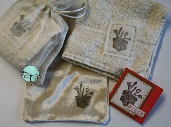 Me gustó tanto la idea que terminé haciendo varios. Es una bolsita con una toallita y su respectiva tarjetica para darla para un cumple. Esto es el "empaque" del verdadero regalo, que va en la tarjeta y es un bono de compra. Como mi amiga es muy creativa se me ocurrió que una toallita "limpia todo" No estaria mal, ya que yo tengo una siempre a mano, y asi personalizada pues es un "plus".