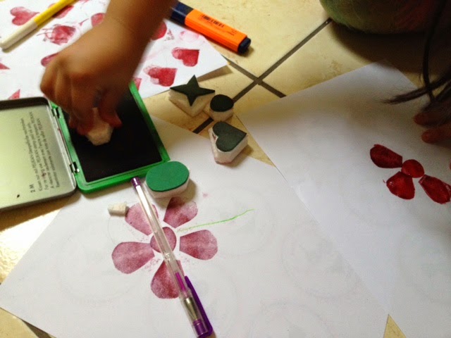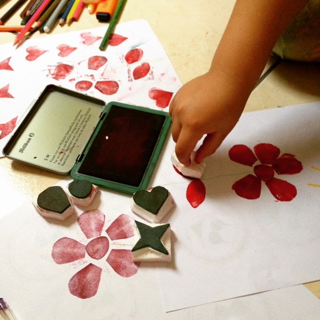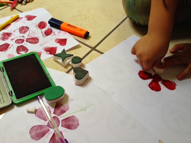 Y listo tenemos los sellos listos para estampar, mi hermanita estaba fascinada y se pasó un largo rato entretenida!