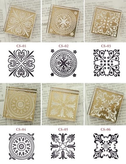 Sellos cuadrados con diseños lo vende: Wonderland Room.