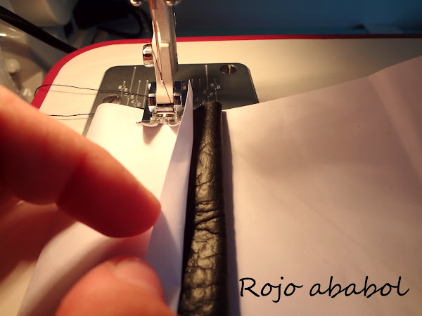 Mi experiencia con este tejido ha sido muy buena. Lo he tratado como cuero y he usado trucos para evitar que la tela se frenara al coser. Supongo que usar una pata de teflón hubiese sido lo ideal para coser este material, pero no la tengo, así que recurrí al papelito ;)