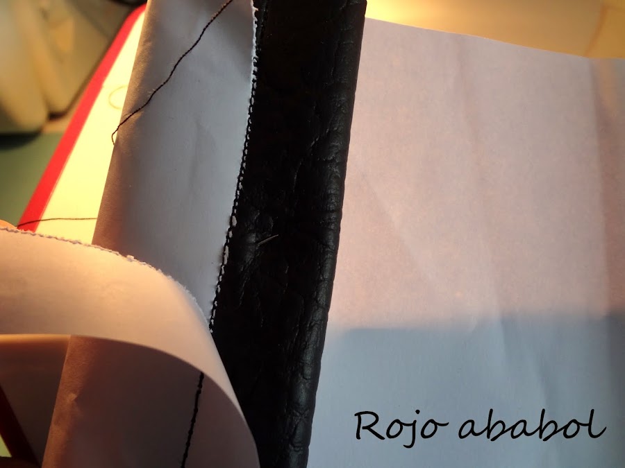 Cuando toca coser los interiores del bolso, por ejemplo, no hay diferencia a coser cualquier otra tela, no se frena, ni se pega, se cose de cine. El revés de la polipiel toca tela ;)