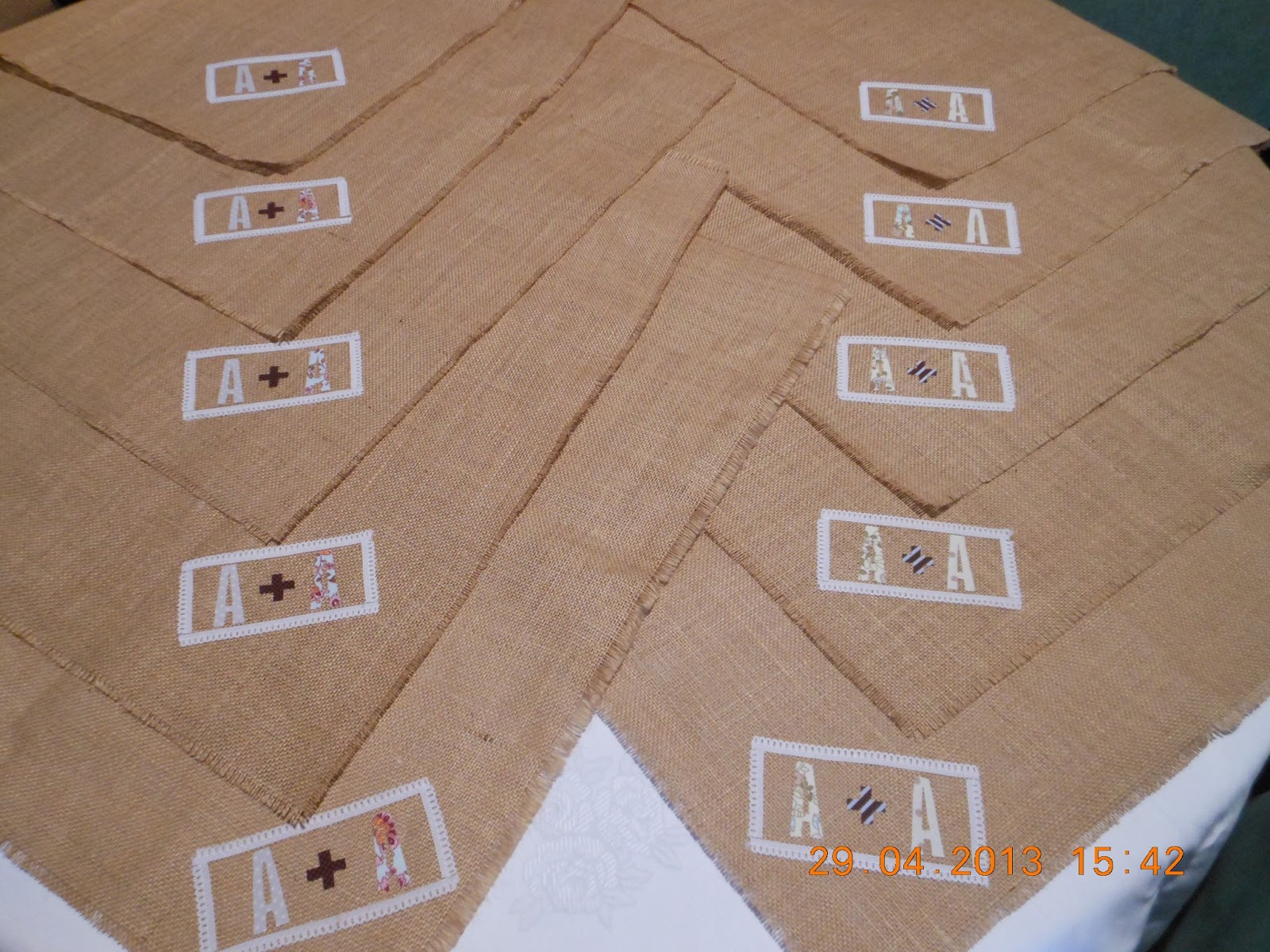 Hoy quería compartir estos sobre-mantel ,que preparó mi hija, para la boda de su amiga, fué una romántica boda en el campo, en una masía del Montseny, donde el entorno es fantástico.Los preparativos, muy cuidados,todos elaborados por los novios y sus amigos, resultando cálidos y sencillos.