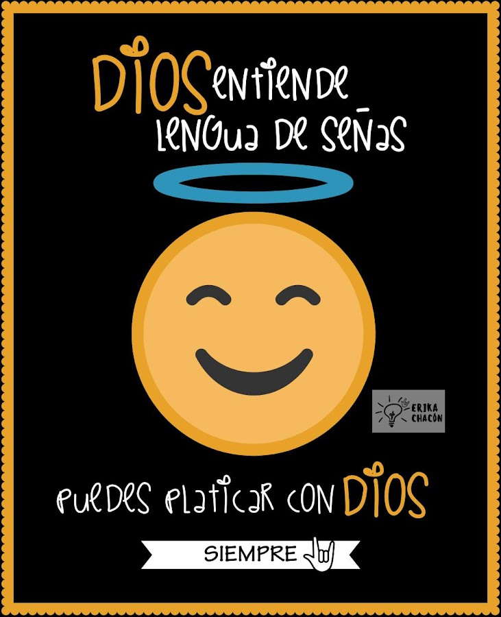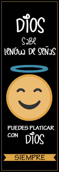 Lindo póster y separador de libros con un mensaje que para mucha gente es real, si Dios escucha las oraciones de millones de personas en el mundo usando diferentes Idiomas también entiende la Lengua de Señas que usan las personas con Discapacidad Auditiva o Personas Sordas.