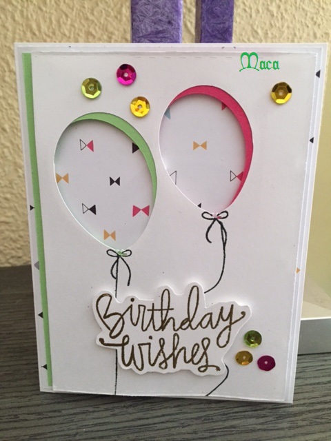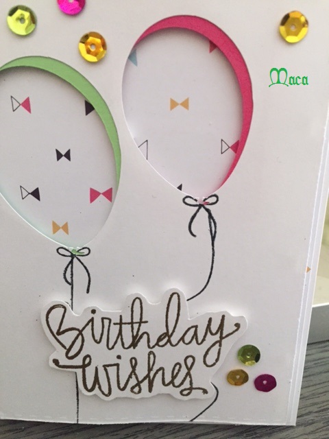 como en el kit vienen unos sellos de globos , y es para celebrar cumpleaños yo he querido seguir esa temática, pero he recortado los globos y usado el negativo,