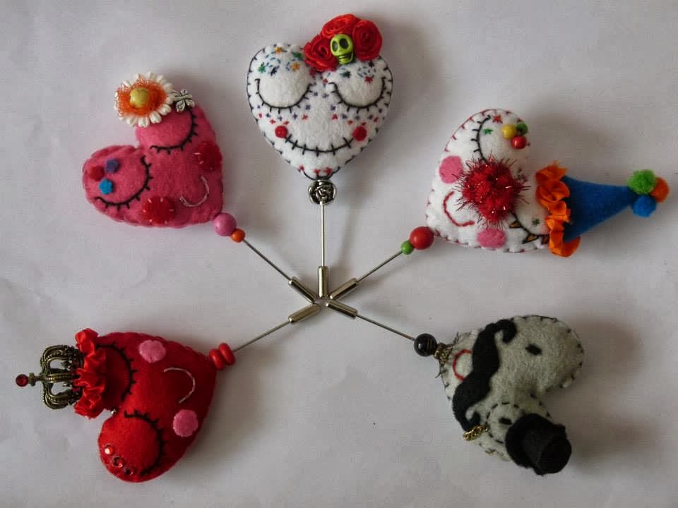 Hace poco empece a hacer agujones y pequeños broches en forma de corazón realizados en fieltro de muchos colores y modelos también personalizables como todo lo que hago.