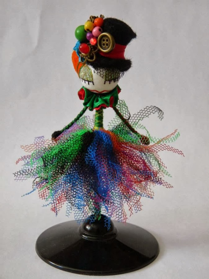 El nombre de mi creación principal mis muñecas llamadas Irinas, las puse ese nombre porque pegaba con bailarina, ya que las Irinas son pequeñas bailarinas, realizadas en alambre, tul, hilo,fieltro, pintadas a mano, personalizadas a vuestro gusto hace poco realice una entrada en el blog contando todo lo que se le podía personalizar, como los colores tanto en pelo, vestido, zapatillas, sombra de ojos. También se puede elegir tamaño las tengo en cuatro tamaños Maxi Irina 13cm, Irina 9cm, Irinita 7cm y microIrina de tan solo 5cm aprox. Pronto sacare un nuevo modelo donde el tamaño de la Irina es de 13 cm pero la Irina se la vera con las piernas mas largas. Las Irinas las encontrarás en varias modalidades En un cuadro donde te sirven de decoración pero también broche, como broche solamente, en broche/colgante para llevarlas de las dos formas, anillo y pendientes.