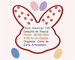 Llego de forma heroica al Reto Amistoso 135 donde Carla de Carla Artesanato es nuestra Anfitriona y es que no podía perdérmelo, un reto muy tentador por cierto, una porque di mi palabra de llegar y la cumplo y dos porque nos vamos a encontrar esta semana tan especial, creo que le he ganado a MJ al idear que presentar a escasos 30 minutos de haber iniciado el reto , ya que han habido varios conejitos este mes y las ideas eran muchas y no lograba concretar una, por fortuna no me rendí porque prefiero tener la mente creativa en nuestro mundillo que estresada en el de haya afuera