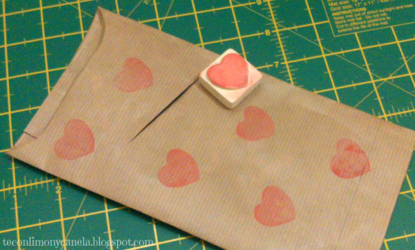 Y para decorarlo, un sello en forma de corazón (hecho con una goma de borrar) y tinta roja.