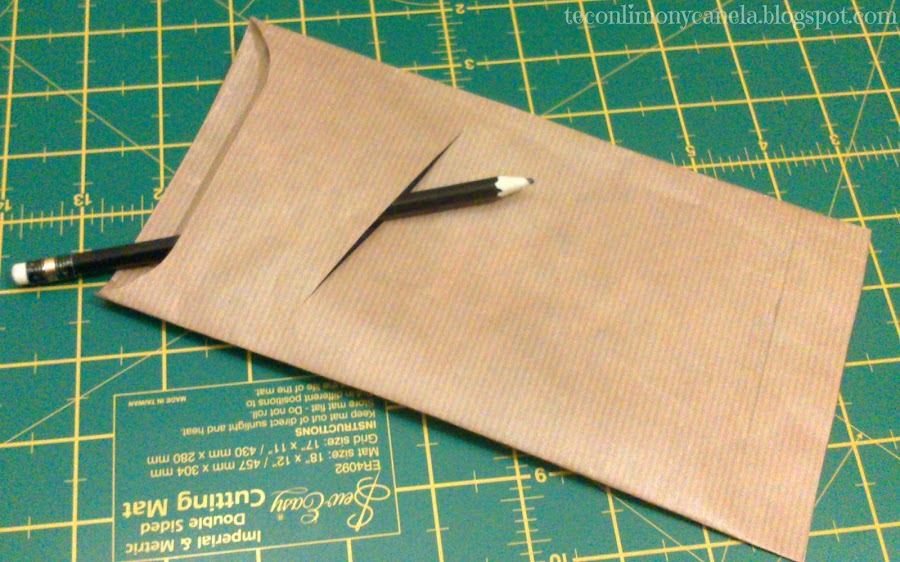 Dibujamos la forma del servilletero, recortamos y hacemos con el cuter un corte, en el que irán los cubiertos.
