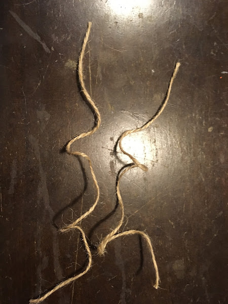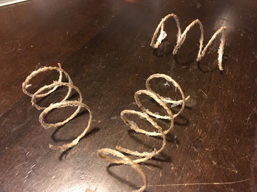 Cortar unos 15 cm de hilo rustico, 2 por cada resorte.