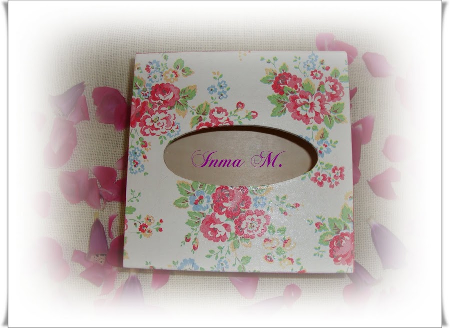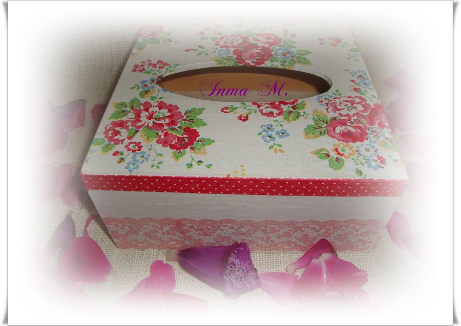 Venga me dejo de charla y os enseño un servilletero que le he hecho a mi hermana, con decoupage y un precioso sello de encaje.