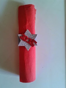Recortáis un trozo de goma eva de la forma que queraís yo en este caso ha sido en forma de estrella. Recortad el año 2015 y un trozo de tira. Lo pegamos todo y ya tenemos nuestro servilletero listo.