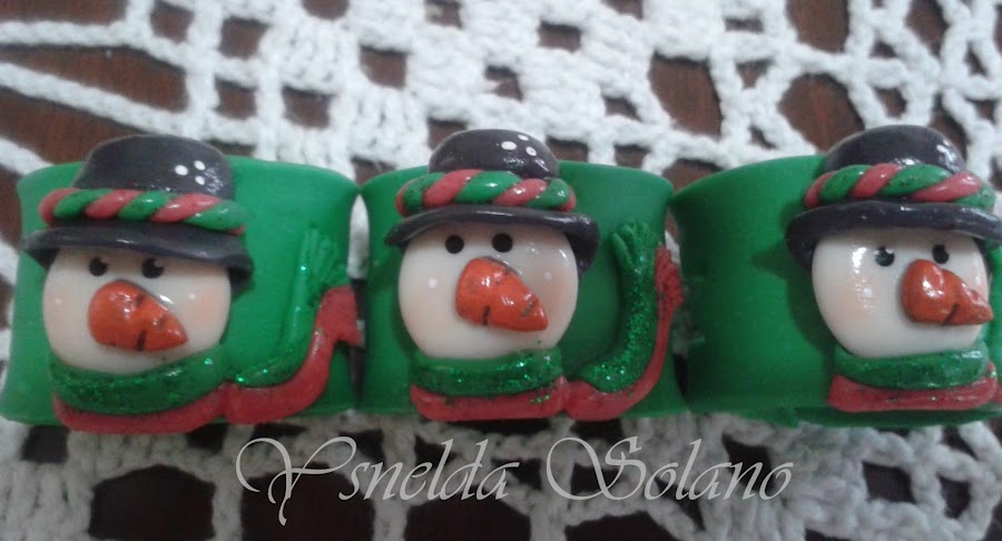 El Primero de esta Serie: Aro para Servilletas con decoración de Muñeco de Nieve.