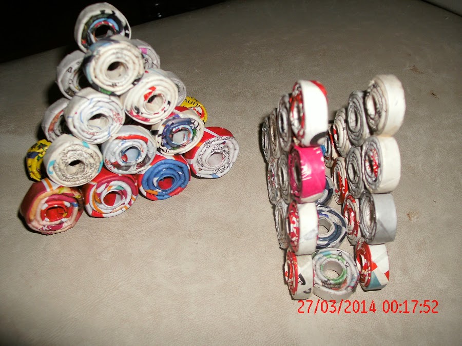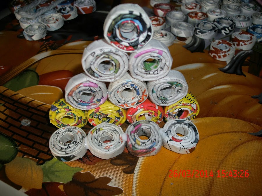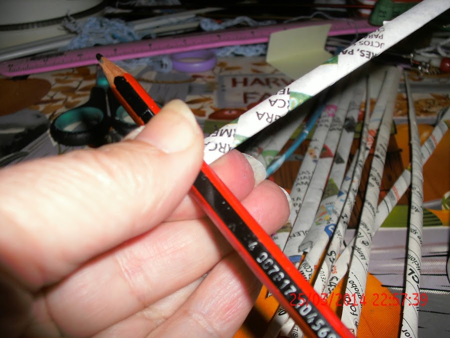 TOMAMOS UNA HOJA DE DIARIO O REVISTA Y LA CORTAMOS EN 2 PARTES, MAS O MENOS TIENE QUE QUEDARNOS UN RECTANGULO DE UNOS 15 CENTIMETROS POR 22 CENTIMETROS, ESO DEPENDE DE LO QUE USEMOS Y QUE TAN GRANDE LO QUEREMOS, PERO TIENE QUE QUEDAR UN RECTANGULO QUE ENROLLAREMOS SOBRE LA AGUJA DE COSER, COMENZANDO DESDE UN ANGULO Y LE PONEMOS PEGAMENTO EN LOS LADOS DEL ANGULO OPUESTO, ASI LO ENROLLAMOS HASTA EL FINAL.