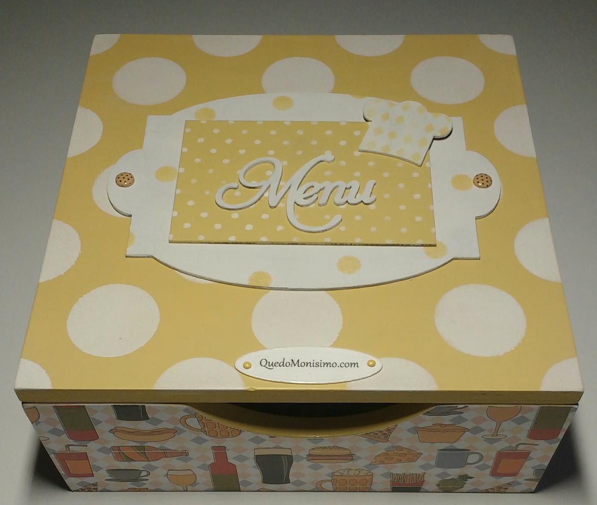 El papel de esta caja es una cartulina de Scrap y los accesorios de la tapa son de Dayka, así como la plantilla de lunares. La etiqueta esta hecha con un troquel y unas tachas.