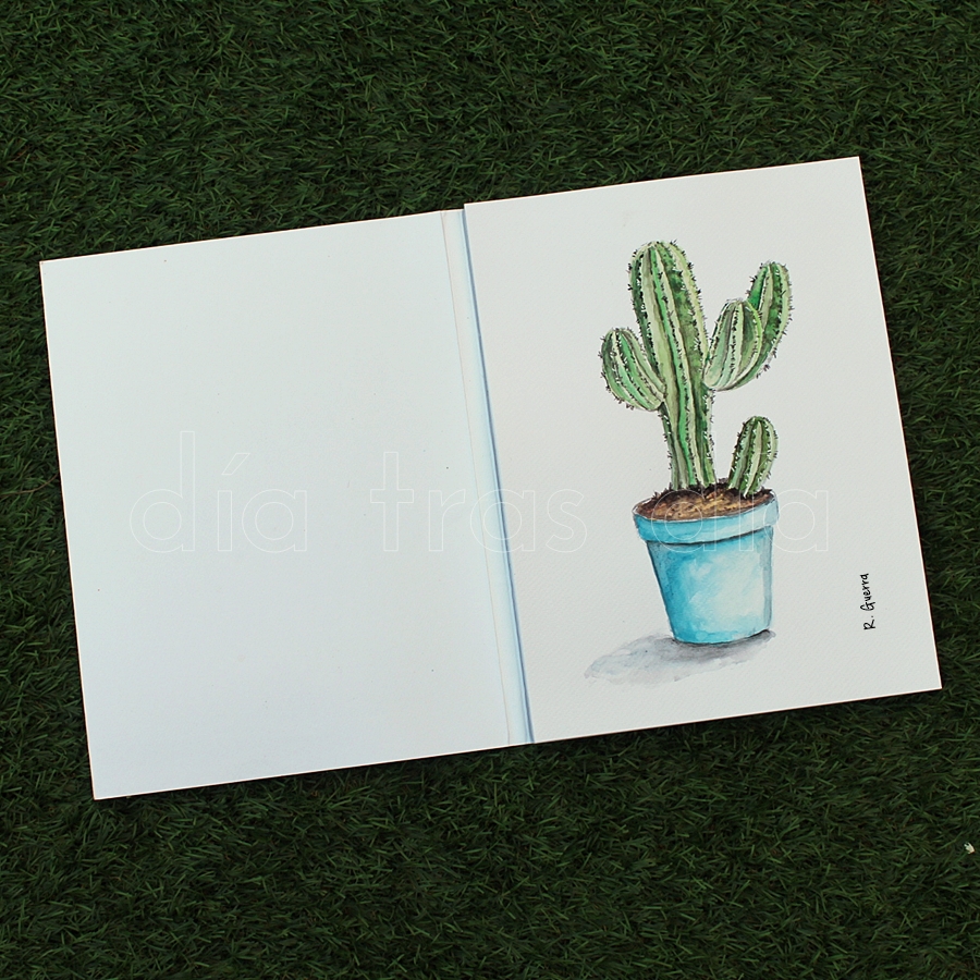 Y para finalizar, la última acuarela de la serie fue una chumbera, también sin maceta, como la segunda lámina, y con fondo color celeste.