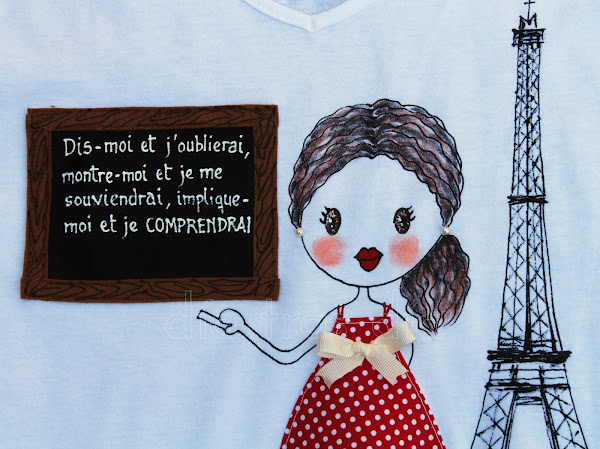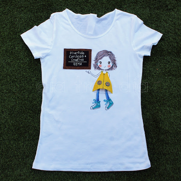 Para comenzar, lo hago con la camisetaque Mercedes me encargó para regalar a la seño Vero, que tiene un detalle que la hace un tanto diferente de las que normalmente acostumbro a enseñaros.