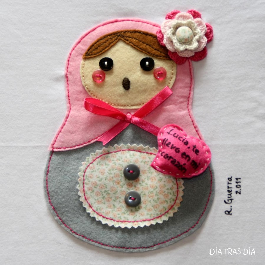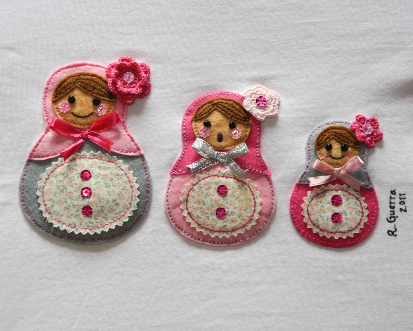 Y dos camisetas más, para dos primas, con distintos modelos de Matrioskas, una del modelo "Las 3 Matrioskas" y otra una Matrioska con mensaje. Pero aunque fuesen distintos modelos, las hice con los mismos colores y usando la misma tela, para que pudiesen ir a conjunto cuando estuviesen juntas.