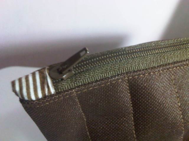 Por dentro está forrado con una telita a rallas. No tiene bolsillos a solicitud de la clienta...
