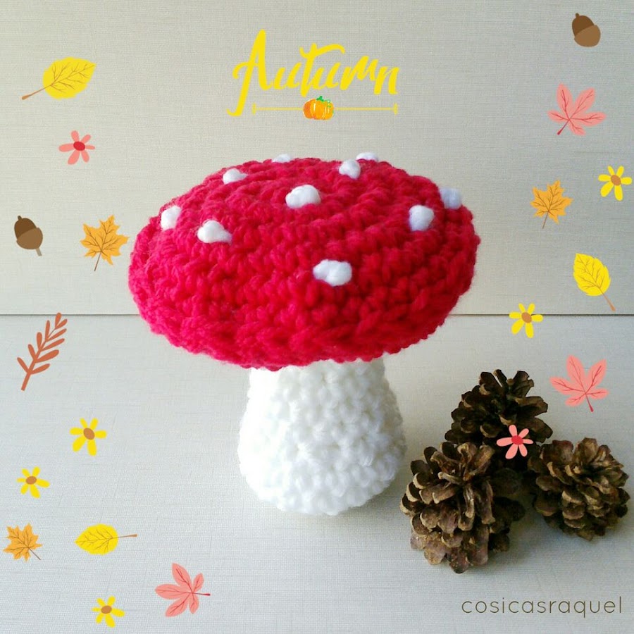Y con el otoño y las lluvias salen las setas , en esta zona del Pirineo tenemos un montón y yo ya tengo las mías de crochet como no jeje.