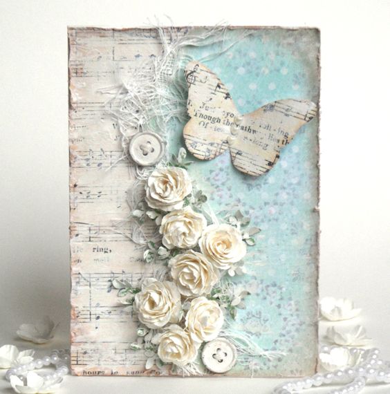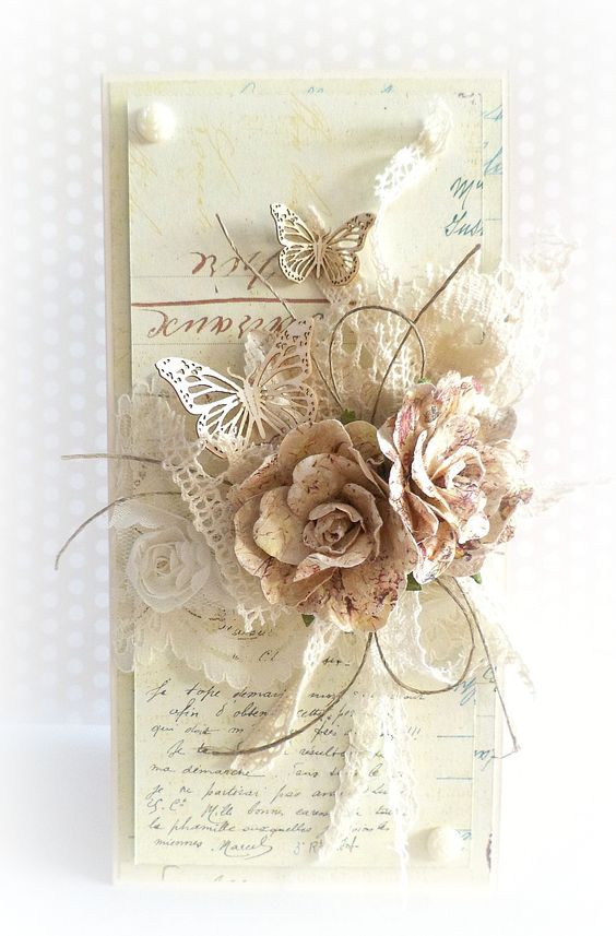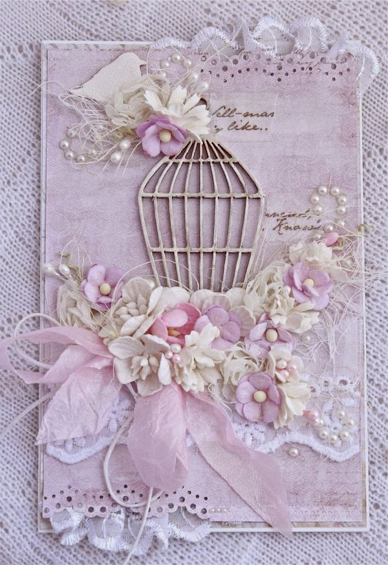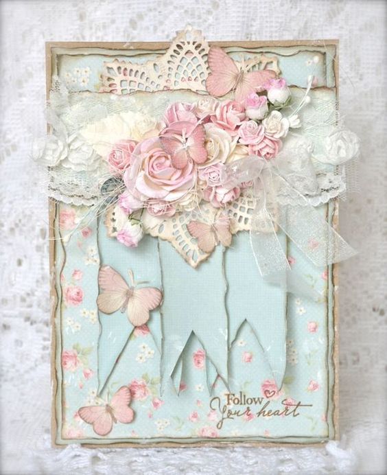 Hoy comienzo este dia trayendoles propuestas PRECIOSAS y encantadoras pues el estilo Shabby Chic es bien apreciado y rico en detalles como podrán apreciar en las siguientes imágenes. Si eres nueva en esto de la tarjetería, te describo cuales son los elementos necesarios para recrear este estilo.