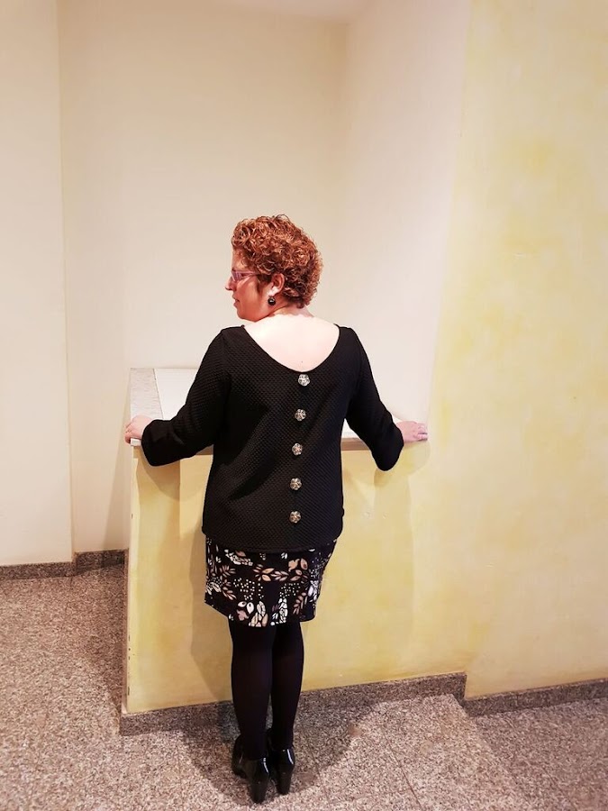 Pero el toque diferente del shirt es la espalda que lleva un escote un poco pronunciado en V y una hilera de grandes botones.