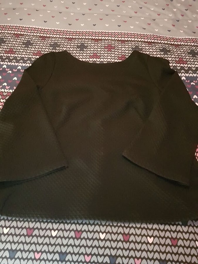 Compre este tejido negro para hacerme una especie de sudadera-jersey pero despues de darle varias vueltas , decidi hacerme un shirt para el dia de Navidad , pero con un toque diferente.