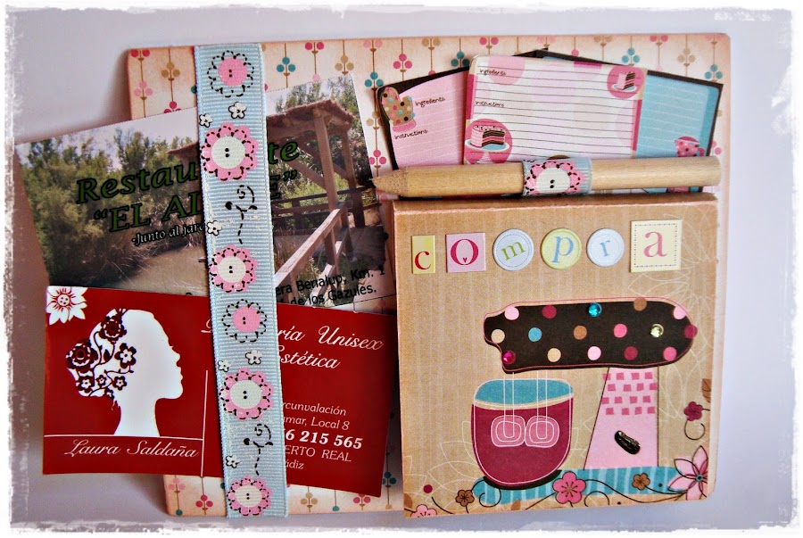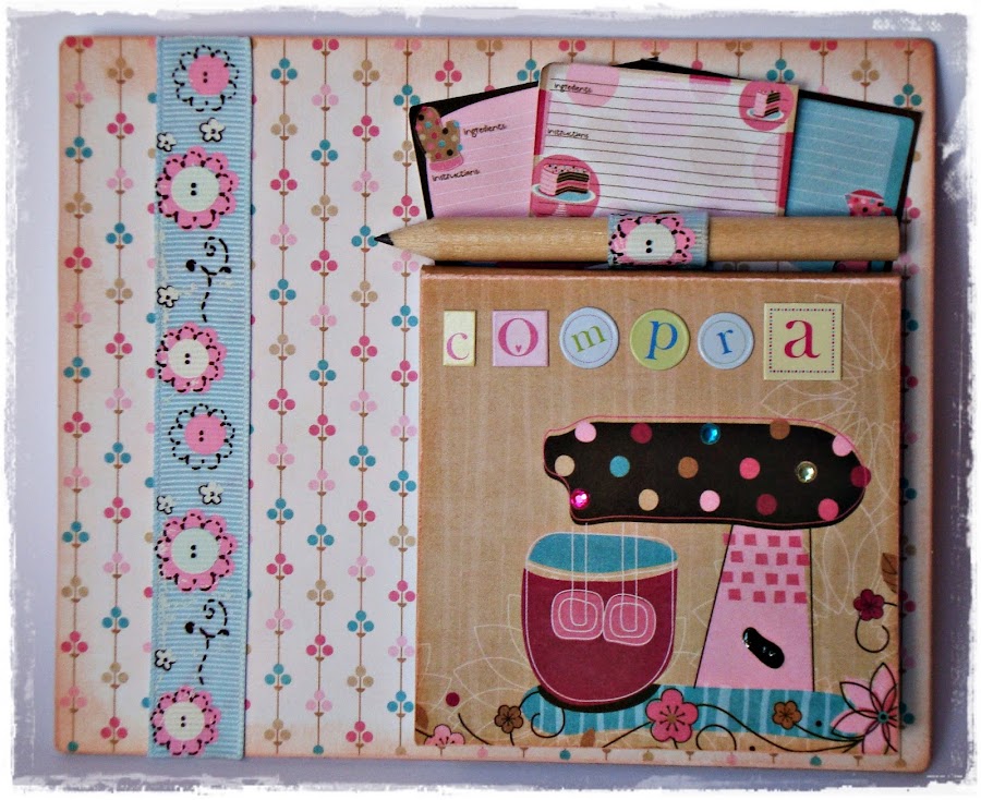 Pero por fin, poco a poco me voy poniendo al día, así que aquí os muestro mi trabajo que va con todo el cariño del mundo. Como no quería que fuera una Shopping List de las típicas (más que nada porque luego reemplazar la libretita supone un problema) decidí elaborarla con un posit. Así que cogí mi cartón gris, lápiz, cutter, y mis papeles Bo Bunny y !aquí está!