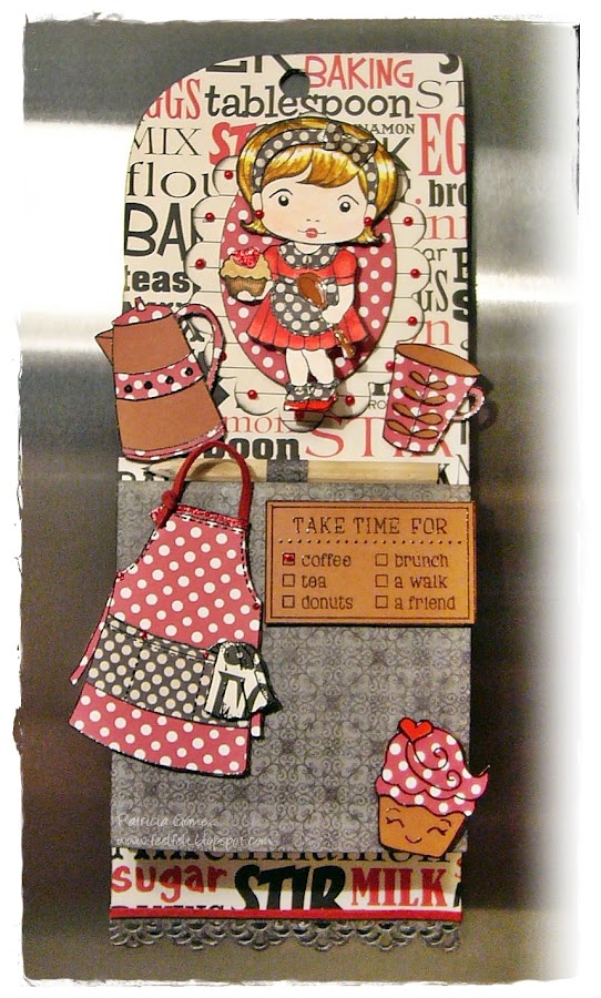 Los sellos de la cafetera y taza, cupcake y cuadrado Take Time For son de Hero Arts, de los paquetes "Kiss The Cook" y "What´s Perking".