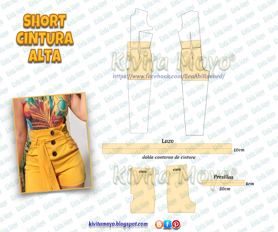 Trazar un pantalon corto elevando la cintura hacia el patron del torzo ignorando las pinzas de entalle, y dibujar la tapeta de abotonadura. Trazar en espejo las vistas, que estaran integradas al cuerpo del short, y estas se doblaran al interior al confeccionarlo.