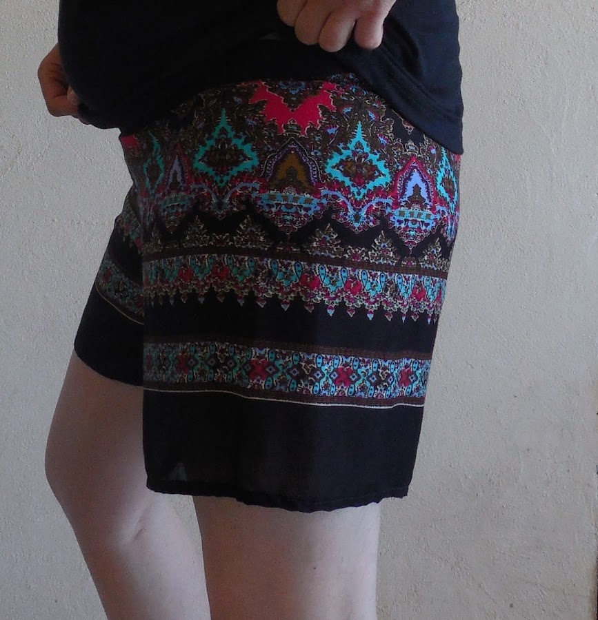 La tela era un retal de fibrana que sobro de mi Top Hera que tenia una cenefa muy bonita que no podía desperdiciar ni tener guardada… no quedo perfecta la unión del estampado en el frente,pero no podía pretender mucho con tan poca tela..