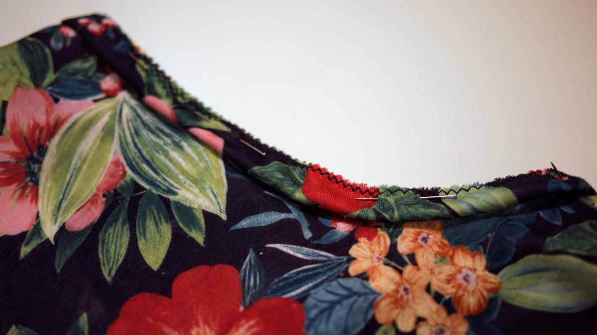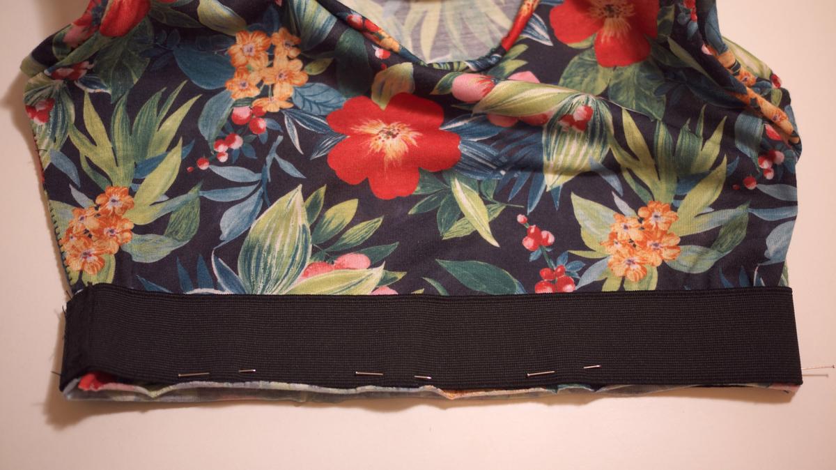 Top deportivo con la goma fijada con alfileres, antes de coser