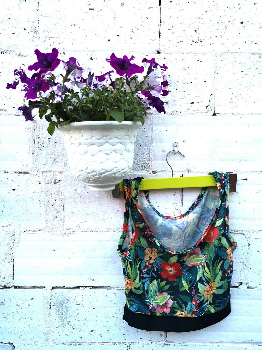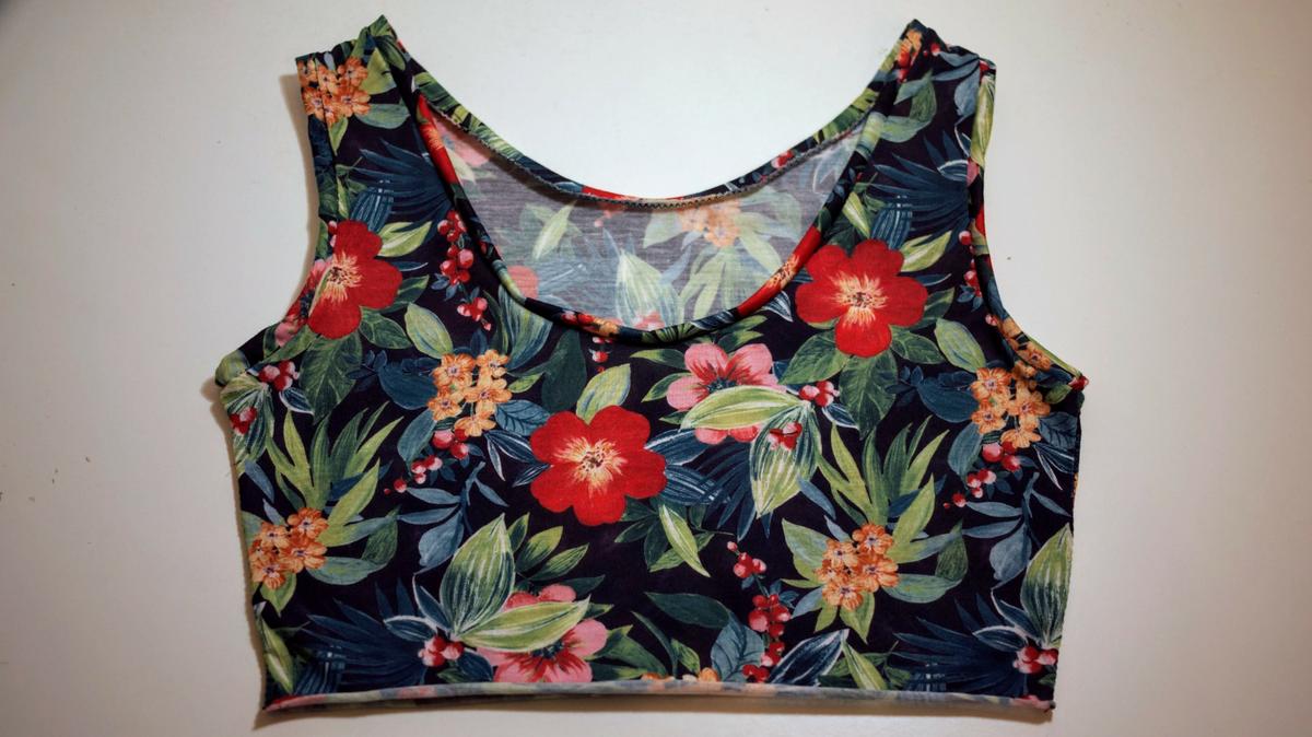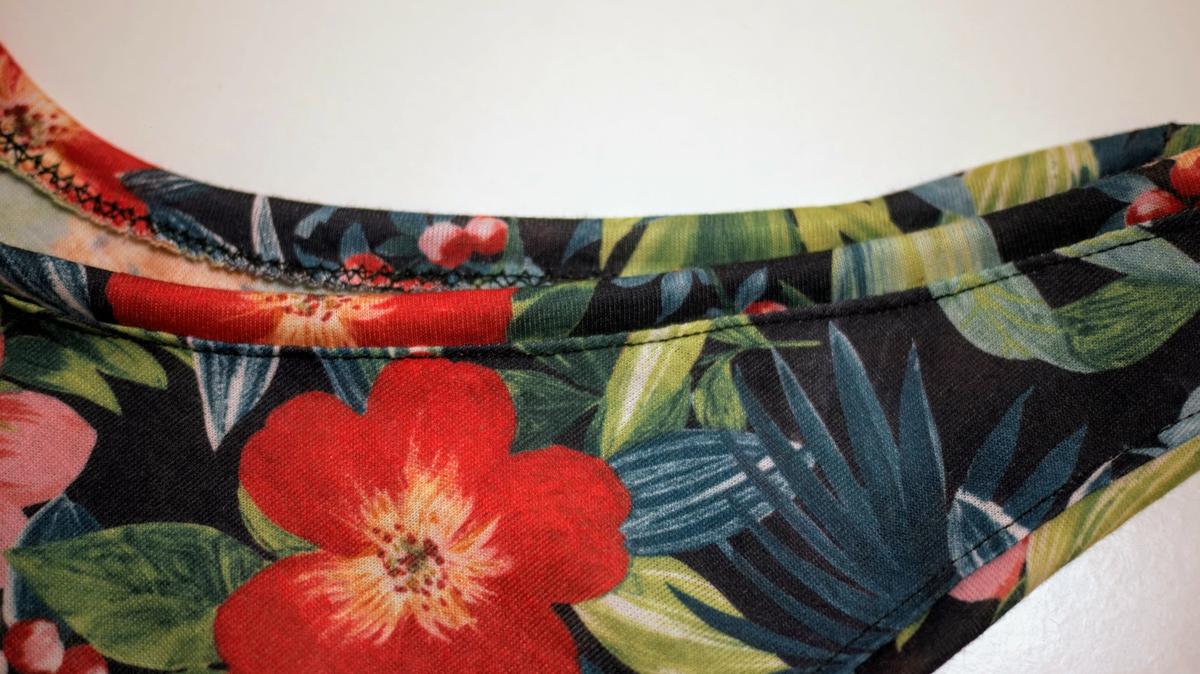 Resultado interior y exterior de cuello y mangas Finalmente el resultado del top, a falta de coser la goma es el siguiente: